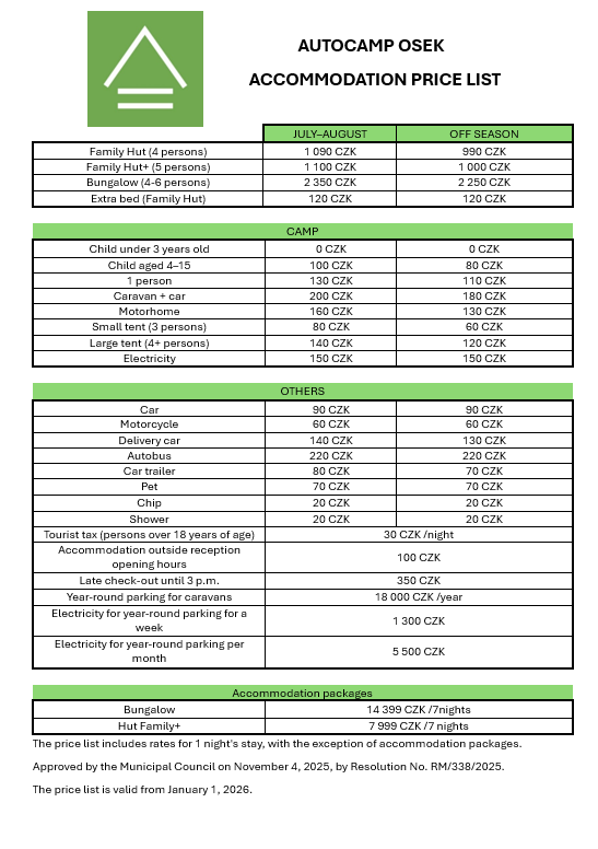 Der Campingplatz Osek und Pension Horal liegt im Region Teplice unter den Erzgebirgehängen im Ústecký Region. Seine Lage ist für Liebhaber der ruhigen und natürlichen Landschaft, für Fußgängertouristik, Radfahrertouristik und historische Denkmäler geeignet. Er ist für die Verwirklichung der Schulaufenthalte, Lagers, Familienerholung, Sportkurse und individuelle Aufenthalte.