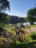 Schwimmangebot:Teich, Sandstrand für Kinder geeignet und kostenlos zugängliche Rutsche (25m) mit dem immer fließenden Wasser, mit dem Boot- und Trittboot-, Mountainbike-, Surfbretter- und Tischtennisverleih.