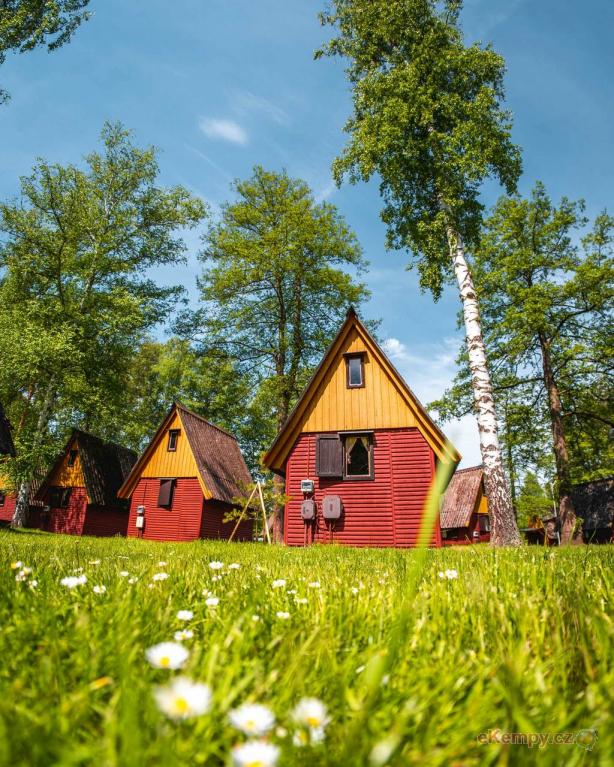 Ubytování ve čtyřmístných chatkách s 2 lůžky v přízemí a 2 místy v podkroví. Každá chatka má svou terasu. Wi-Fi zahrnuta v ceně chatek. Dále nabízíme ubytování v indiánském týpí, apartmánu, vlastním stanu, karavanu, či obytném automobilu.