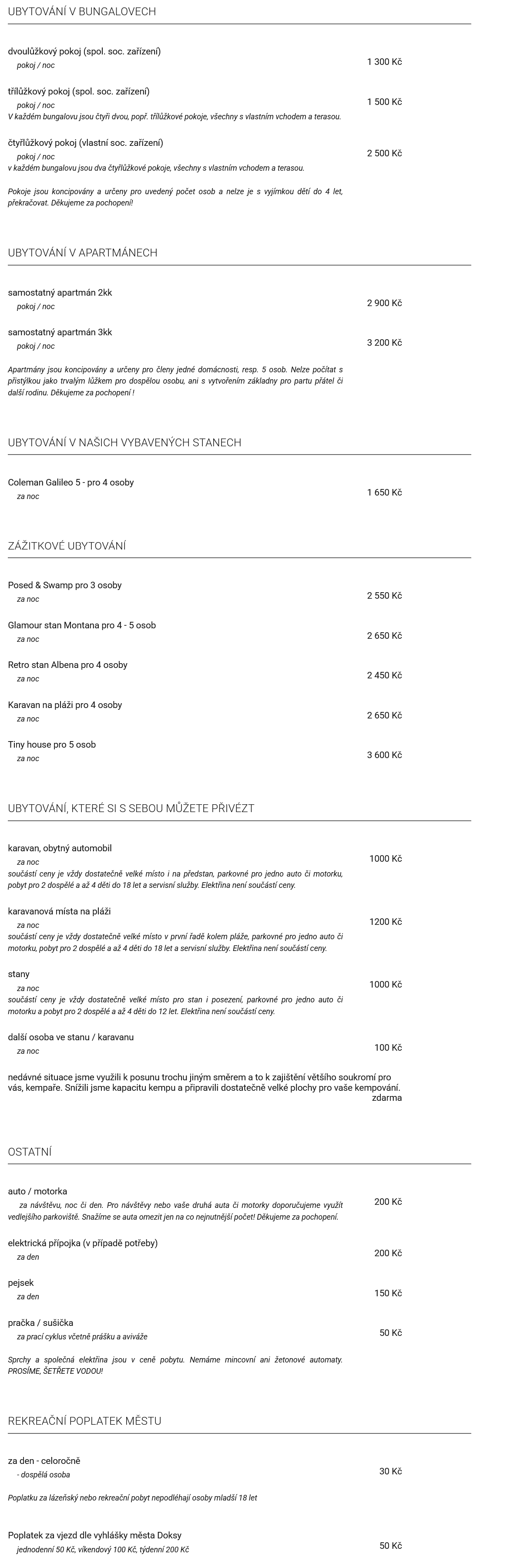 Family Camping Máchovo jezero (ehemaliges Camp Andrea) liegt in einer romantischen und ruhigen Bucht mit eigenem Sandstrand. Die Gesamtkapazität der Apartments und Zimmer in Bungalows beträgt 50 Betten. Die Saison beginnt im April und endet im Oktober. Der Campingplatz verfügt über eine modifizierte Grasfläche mit ausgereiften Nadelbäumen, die an heißen Sommertagen ein einzigartiges Mikroklima und sehr angenehme Temperaturen bieten. Kostenloses WIFI Internet.