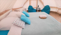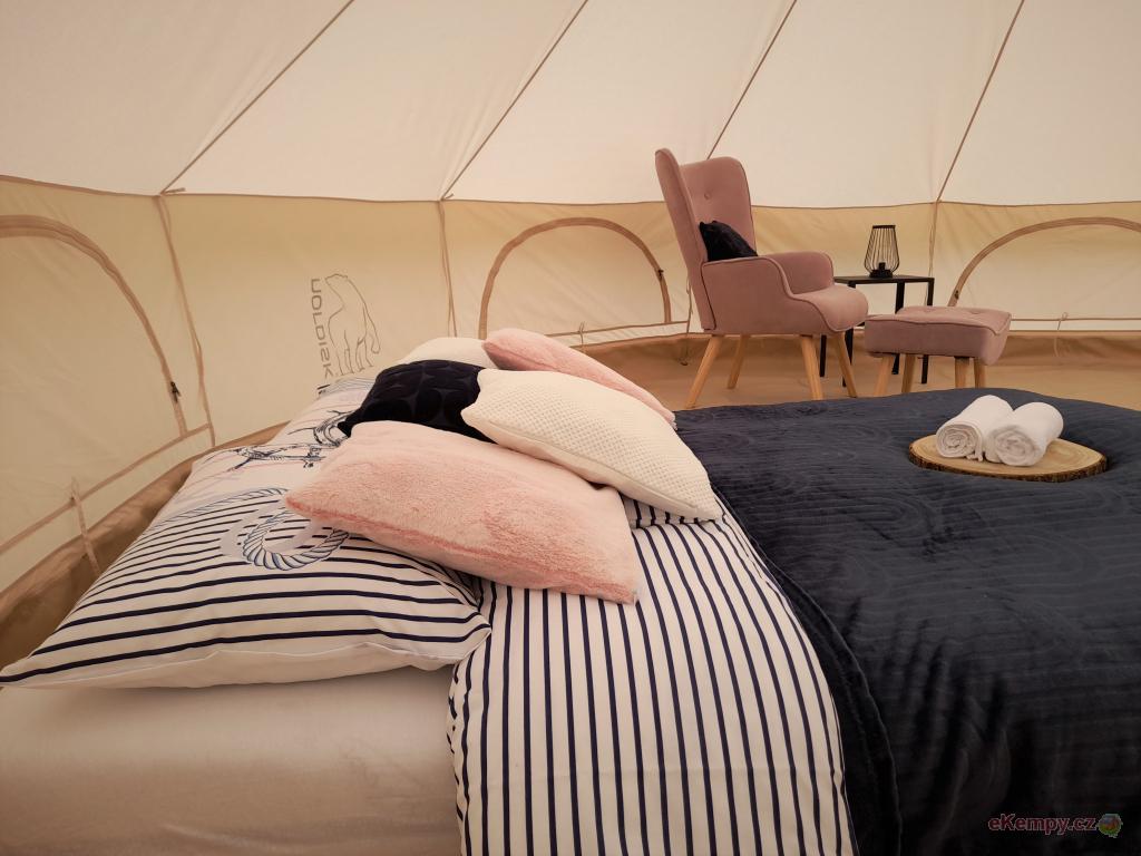 V glampu je pět glampingových stanů v dostatečné vzdálenosti od sebe pro zachování soukromí. Všechny jsou vybaveny moderně, pohodlně a v souladu s přírodou. Ve stanech různých velikostí najdete pohodlné postele, posezení, a drobný nábytek. Před stanem se nachází terasa s venkovním posezením a výhledem na přehradu.
