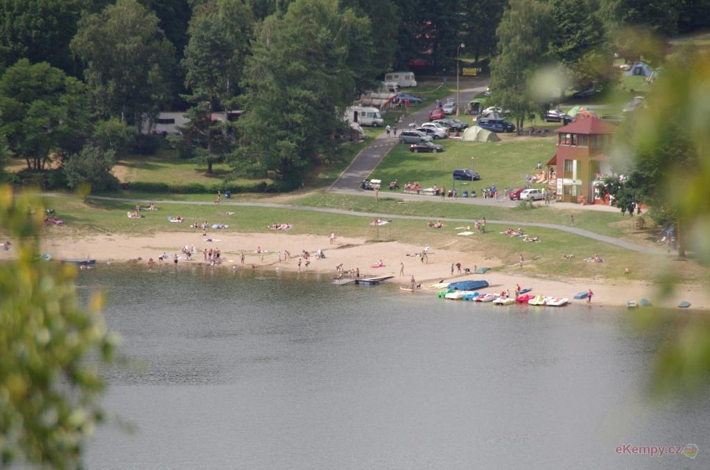 Der Campingplatz bietet Unterkunft in wunderschöner Natur an. Es grenzt an Strand der Stausperre. Es gibt hier Fahrradaufbewahrung, Verleih der Boote und Sportausrüstung, Spielplätze, Gesellschaftsraum, Küche, Kinderecke, Hüpfburg. Sie finden hier ein Geschäft mit Grundnahrungsmitteln, Imbissstuben, Eis, und gemütliche Kneipen. Die Zelte und Wohnwagen können in zwei geteilte Sektoren gestellt werden (der ruhige Sektor für Familien mit Kindern ist weiter von der Rezeption), Stromanschluss ist in beiden Sektoren möglich. Mit Rücksicht auf die Entfernung vom Wasser ist das Camp auch für Angler gut (Achtung: ohne den tschechischen Angelschein ist nicht möglich, einen Erlaubnisschein zu kaufen). Das Camp ist eine gepflegte Rasenfläche, direkt daran schließt ein grasiger Strand mit dem sandigen Ufer an. Um Sicherheit der Gäste kümmert sich der Rettungsdienst des Roten Kreuzes.